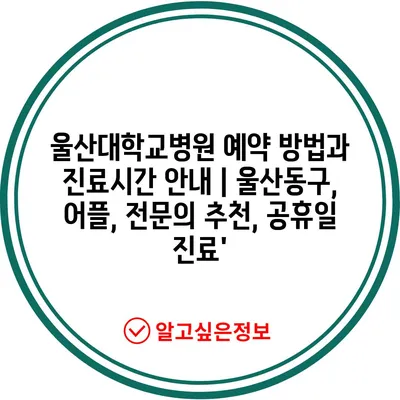 울산대학교병원 예약 방법과 진료시간을 지금 바로 알아보세요.