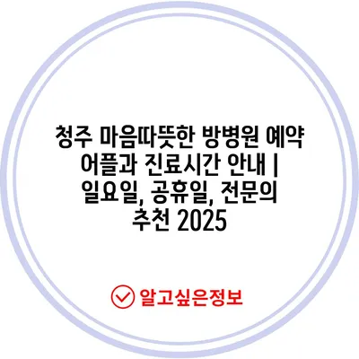 청주 마음따뜻한 방병원 예약 어플과 진료시간 공지 | 일요일, 공휴일, 전연락 추천 2025 에 대해 자주 묻는 질문 TOP 5