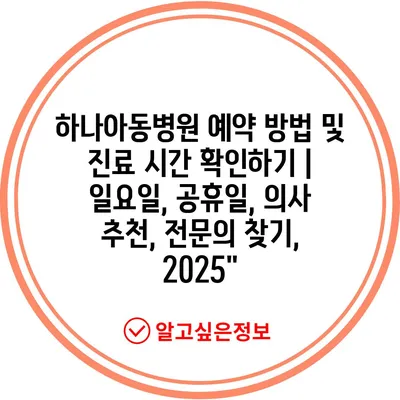 하나아동병원 예약 방법 및 진료 시간 확인하기 | 일요일, 공휴일, 의사 추천, 전연락 찾기, 2025
