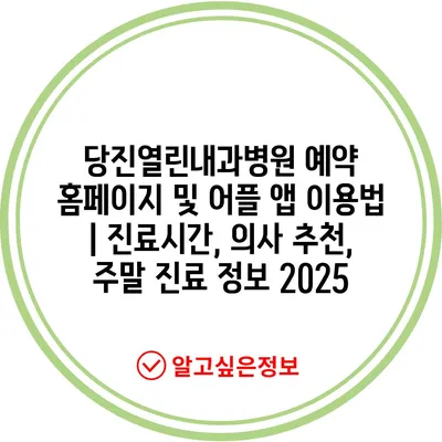 당진열린내과병원 예약 홈페이지 및 어플 앱 이용법 | 진료시간, 의사 추천, 주말 진료 정보 2025에 대해 알아보겠습니다.