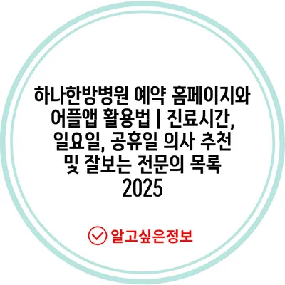 하나한방병원 예약 홈페이지와 어플앱 활용법 | 진료시간, 일요일, 공휴일 의사 추천 및 잘보는 전연락 목록 2025에 대해 알아보겠습니다.