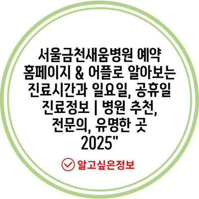 서울금천새움병원 예약 홈페이지 & 어플로 알아보는 진료시간과 일요일, 공휴일 진료정보 | 병원 추천, 전연락, 유명한 곳 2025″ 에 대해 자주 묻는 질문 TOP 5