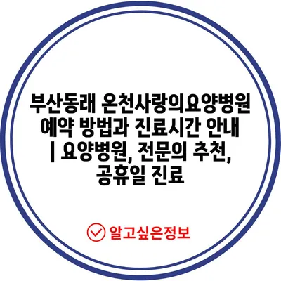 ✅ 부산동래 온천사랑의요양병원 예약 방법을 지금 바로 알아보세요!