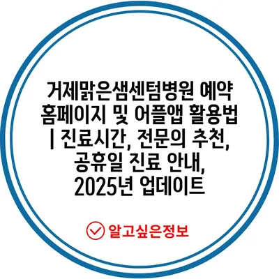 거제맑은샘센텀병원 예약 홈페이지 및 어플앱 활용법 | 진료시간, 전연락 추천, 공휴일 진료 공지, 2025년 업데이트 에 대해 자주 묻는 질문 TOP 5
