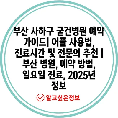 부산 사하구 굳건병원 예약 설명서| 어플 사용법, 진료시간 및 전연락 추천 | 부산 병원, 예약 방법, 일요일 진료, 2025년 정보 에 대해 자주 묻는 질문 TOP 5