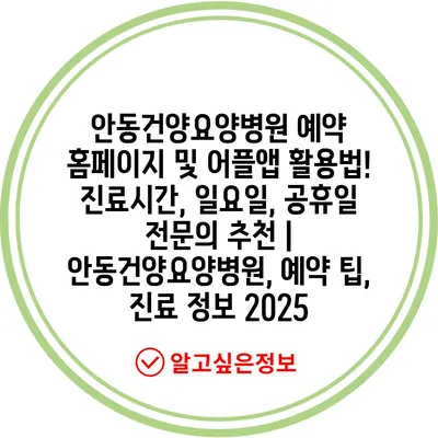 안동건양요양병원 예약 홈페이지 및 어플앱 활용법! 진료시간, 일요일, 공휴일 전연락 추천 | 안동건양요양병원, 예약 팁, 진료 정보 2025에 대해 알아보겠습니다.