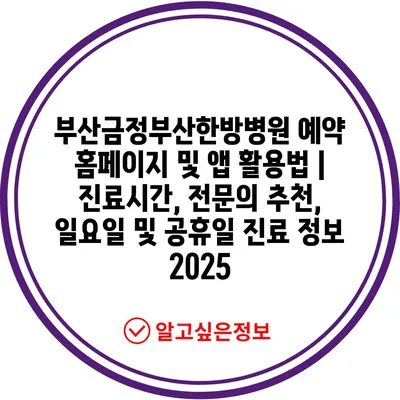 부산금정부산한방병원 예약 홈페이지 및 앱 활용법 | 진료시간, 전연락 추천, 일요일 및 공휴일 진료 정보 2025에 대해 알아보겠습니다.