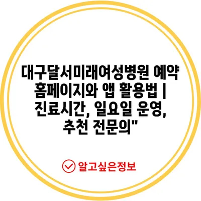 ✅ 대구달서미래여성병원의 예약 방법과 진료 정보를 알아보세요.