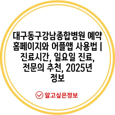 대구동구강남종합병원 예약 홈페이지와 어플앱 사용법 | 진료시간, 일요일 진료, 전연락 추천, 2025년 정보 에 대해 자주 묻는 질문 TOP 5