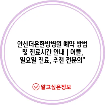 안산더온한방병원 예약 방법 및 진료시간 안내 | 어플, 일요일 진료, 추천 전문의”