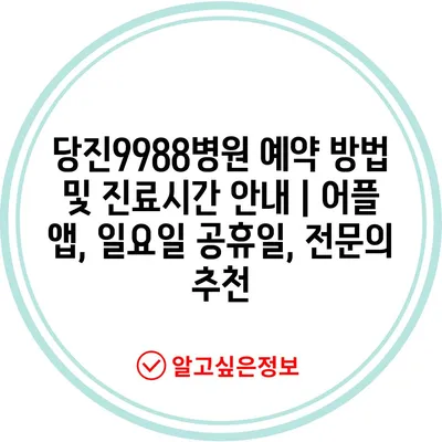 ✅ 당진9988병원의 예약 방법과 팁을 지금 바로 알아보세요!