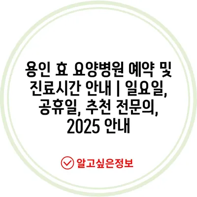 용인 효 요양병원 예약 및 진료시간 공지 | 일요일, 공휴일, 추천 전연락, 2025 공지