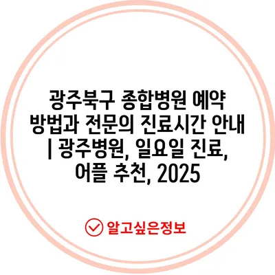 광주북구 종합병원 예약 방법과 전연락 진료시간 공지 | 광주병원, 일요일 진료, 어플 추천, 2025 에 대해 자주 묻는 질문 TOP 5