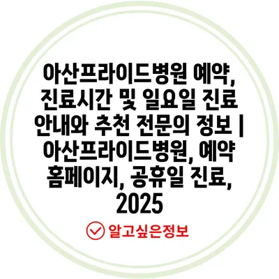 아산프라이드병원 예약, 진료시간 및 일요일 진료 공지와 추천 전연락 정보 | 아산프라이드병원, 예약 홈페이지, 공휴일 진료, 2025에 대해 알아보겠습니다.