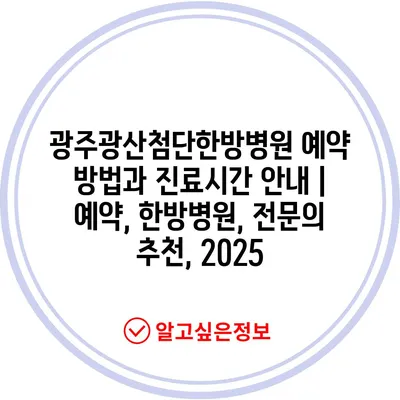 광주광산첨단한방병원 예약 방법과 진료시간 공지 | 예약, 한방병원, 전연락 추천, 2025 에 대해 자주 묻는 질문 TOP 5