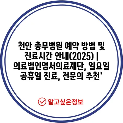 ✅ 천안 충무병원의 예약 방법과 진료시간을 쉽게 알아보세요.