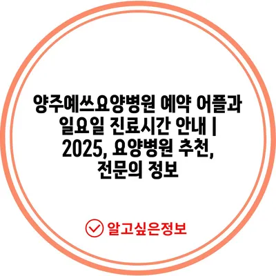 양주예쓰요양병원 예약 어플과 일요일 진료시간 공지 | 2025, 요양병원 추천, 전연락 정보 에 대해 자주 묻는 질문 TOP 5