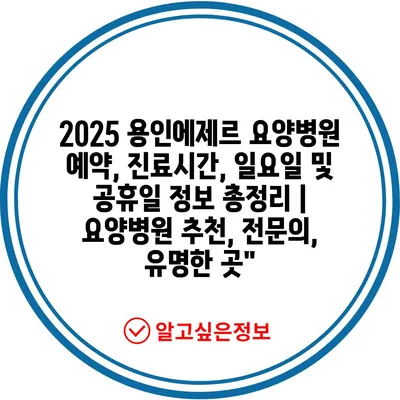 2025 용인에제르 요양병원 예약, 진료시간, 일요일 및 공휴일 정보 총정리 | 요양병원 추천, 전연락, 유명한 곳에 대해 알아보겠습니다.