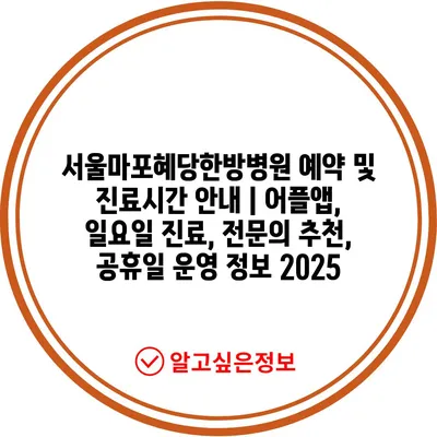 서울마포혜당한방병원 예약 및 진료시간 공지 | 어플앱, 일요일 진료, 전연락 추천, 공휴일 운영 정보 2025