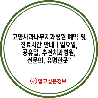 ✅ 고양사과나무치과병원의 진료시간과 예약 방법을 알아보세요.