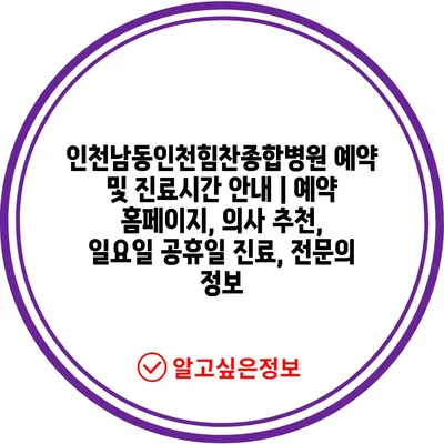 인천남동인천힘찬종합병원 예약 및 진료시간 공지 | 예약 홈페이지, 의사 추천, 일요일 공휴일 진료, 전연락 정보에 대해 자주 묻는 질문 TOP 5
