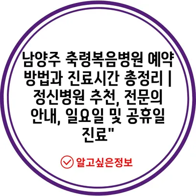 ✅ 남양주 축령복음병원의 예약 방법과 진료시간을 지금 바로 확인해 보세요.