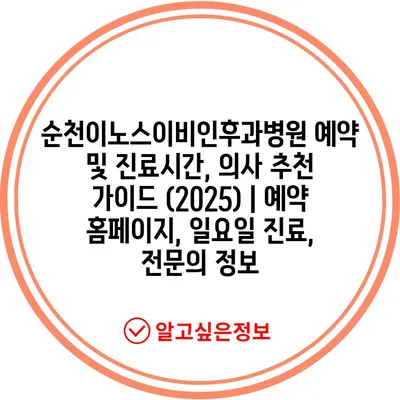✅ 순천이노스이비인후과병원의 진료시간과 예약 방법을 알아보세요.