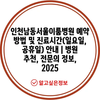 인천남동서울이룸병원 예약 방법 및 진료시간(일요일, 공휴일) 공지 | 병원 추천, 전연락 정보, 2025에 대해 알아보겠습니다.