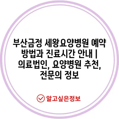 부산금정 세왕요양병원 예약 방법과 진료시간 공지 | 의료법인, 요양병원 추천, 전연락 정보 에 대해 자주 묻는 질문 TOP 5