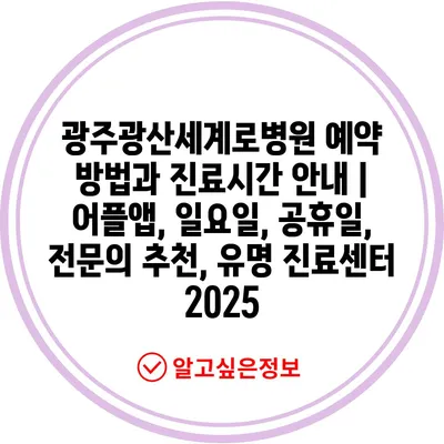 광주광산세계로병원 예약 방법과 진료시간 공지 | 어플앱, 일요일, 공휴일, 전연락 추천, 유명 진료센터 2025에 대해 알아보겠습니다.