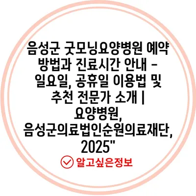 음성군 굿모닝요양병원 예약 방법과 진료시간 공지 – 일요일, 공휴일 이용법 및 추천 전문가 소개 | 요양병원, 음성군의료법인순원의료재단, 2025″ 에 대해 자주 묻는 질문 TOP 5