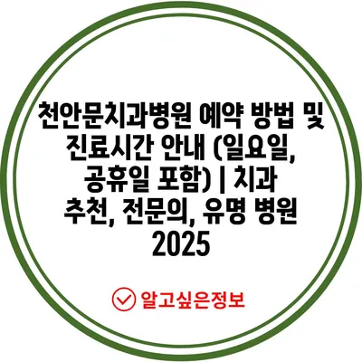 ✅ 천안문치과병원의 진료시간과 예약 방법을 지금 확인해 보세요.