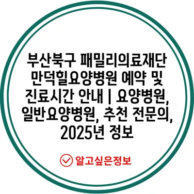 부산북구 패밀리의료재단 만덕힐요양병원 예약 및 진료시간 안내 | 요양병원, 일반요양병원, 추천 전문의, 2025년 정보