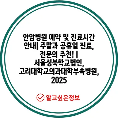 안암병원 예약 및 진료시간 안내| 주말과 공휴일 진료, 전문의 추천! | 서울성북학교법인, 고려대학교의과대학부속병원, 2025