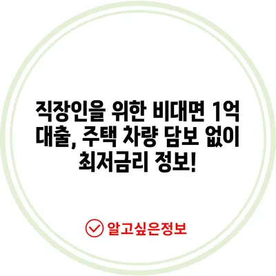 직장인을 위한 비대면 1억 대출, 주택 차량 담보 없이 최저금리 정보!
