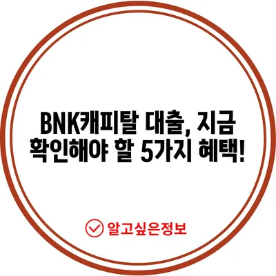 BNK캐피탈 대출, 지금 확인해야 할 5가지 혜택!