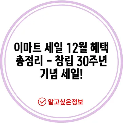 이마트 세일 12월 혜택 총정리 – 창립 30주년 기념 세일!