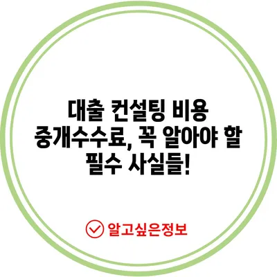 대출 컨설팅 비용 중개수수료, 꼭 알아야 할 필수 사실들!
