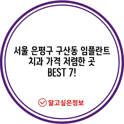 서울 은평구 구산동 임플란트 치과 가격 저렴한 곳 BEST 7!