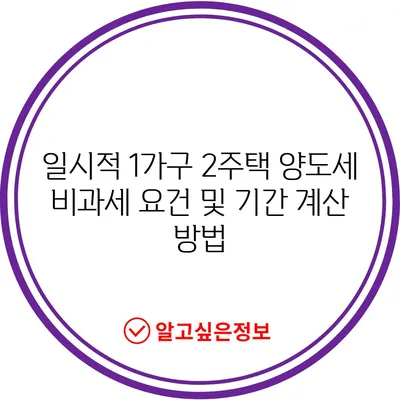 일시적 1가구 2주택 양도세 비과세 요건 및 기간 계산 방법