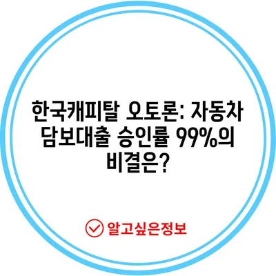 한국캐피탈 오토론: 자동차 담보대출 승인률 99%의 비결은?