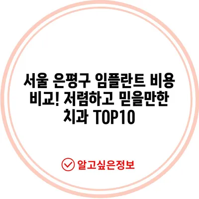 서울 은평구 임플란트 비용 비교! 저렴하고 믿을만한 치과 TOP10