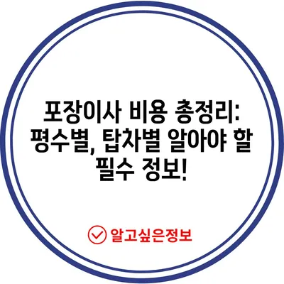 포장이사 비용 총정리: 평수별, 탑차별 알아야 할 필수 정보!